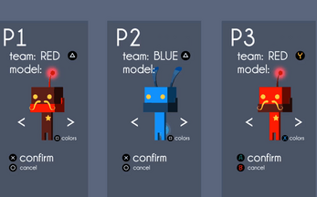 Known issue: This game only shows the first controller's bindings on the main menu. Keyboard menu bindings still work and are: WASD:move, space:confirm, z:back